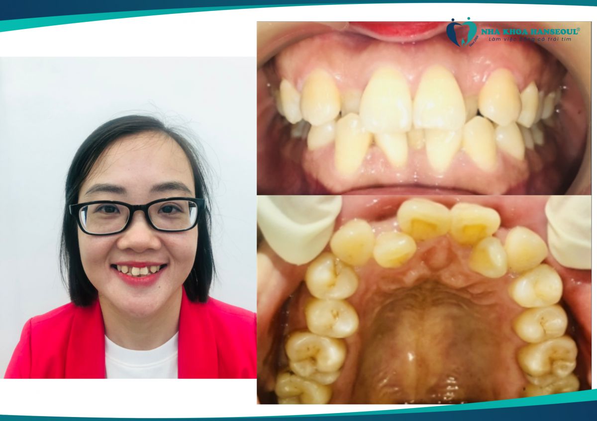 Trước khi đến với Nha khoa HanSeoul, chị Trâm gặp tình trạng răng khấp khểnh, đặc biệt là răng khểnh có nanh. Dù đã 41 tuổi – độ tuổi mà nhiều người cho là “không còn phù hợp để niềng”, chị vẫn quyết định thay đổi nụ cười của mình.