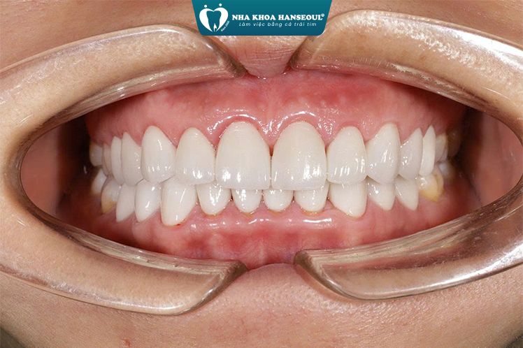 - Bọc sứ toàn hàm bằng sứ cao cấp, màu sắc được cá nhân hóa để phù hợp với sắc da và gương mặt.