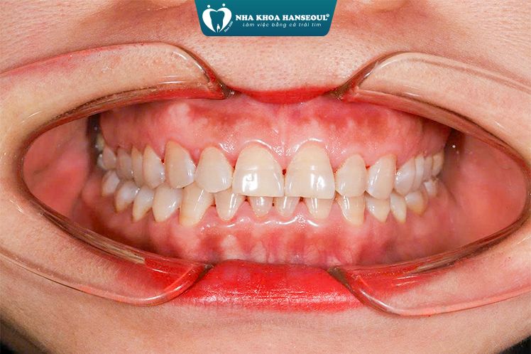 Răng hơi xô lệch nhẹ, tạo cảm giác không đồng nhất về thẩm mỹ.