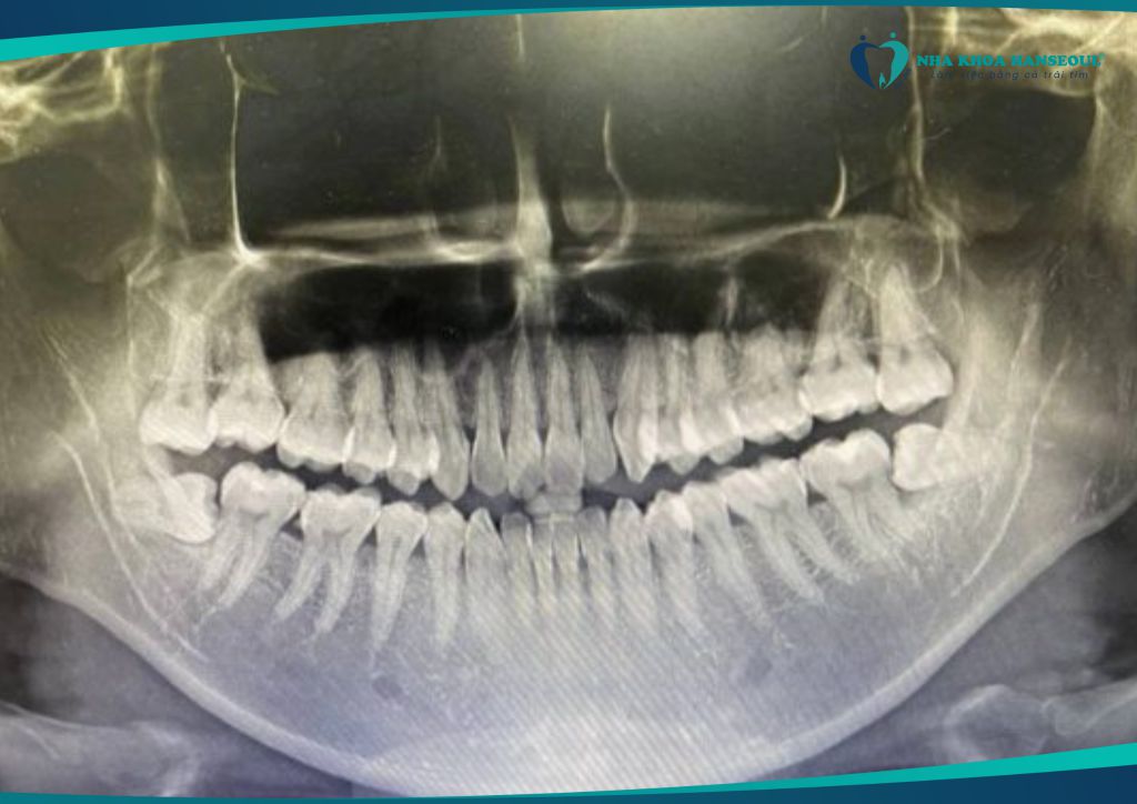- Chụp phim cho thấy mọc lệch, mọc ngầm, đâm vào răng khác
