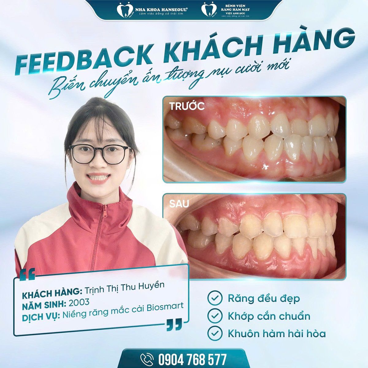 Với phương châm “mỗi nụ cười là một tác phẩm hoàn thiện của sự tỉ mỉ và tận tâm”, bác sĩ luôn đặt lợi ích và sự hài lòng của khách hàng lên hàng đầu, không ngừng trau dồi kiến thức, ứng dụng các công nghệ tiên tiến như BioSmart trong chẩn đoán và điều trị chỉnh nha.