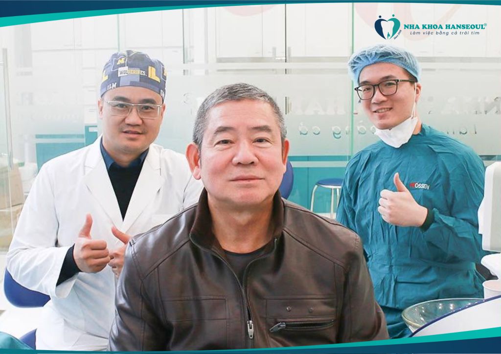“Ban đầu chú rất lo sợ vì tuổi mình cũng tương đối rồi, sợ nó ảnh hưởng đến sức khỏe. Đến khi trực tiếp được điều trị và hoàn thiện thì chú rất bất ngờ, không đau đớn gì cả.” – Chia sẻ của chú Vũ Mạnh Hòa (Việt kiều Séc, 66 tuổi, mất 14 răng) sau khi trồng răng Implant tại Hanseoul. (Xem thêm tại đây)