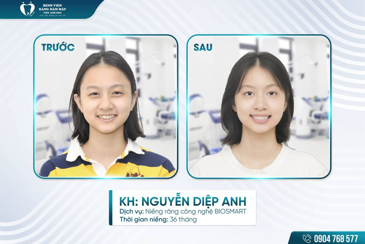 Trong suốt quá trình niềng, Diệp Anh được:- Tái khám đúng lịch